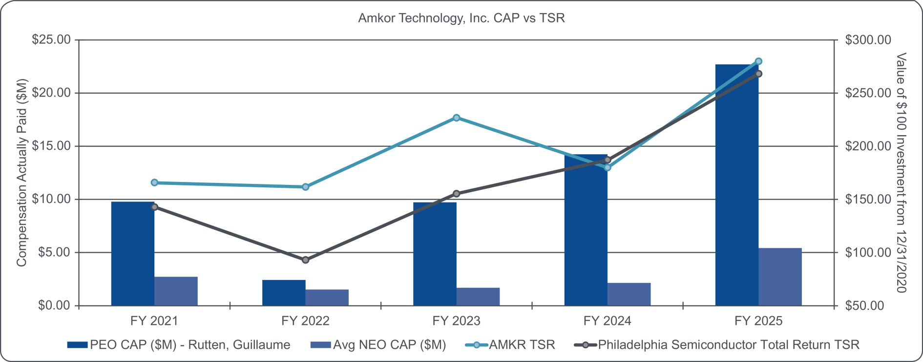 Total shareholder return (“TSR”) data include amounts associated with the reinvestment of dividends. The amounts reported are based on a hypothetical investment of $100 in the common stock of the Company or the SOX Index, as applicable, on December 31, 2020. |